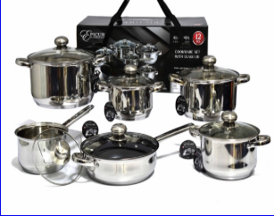 Maxsonic Non-Stick Cookware Set with 3 Nylon Utensils – 14Pc, Grey