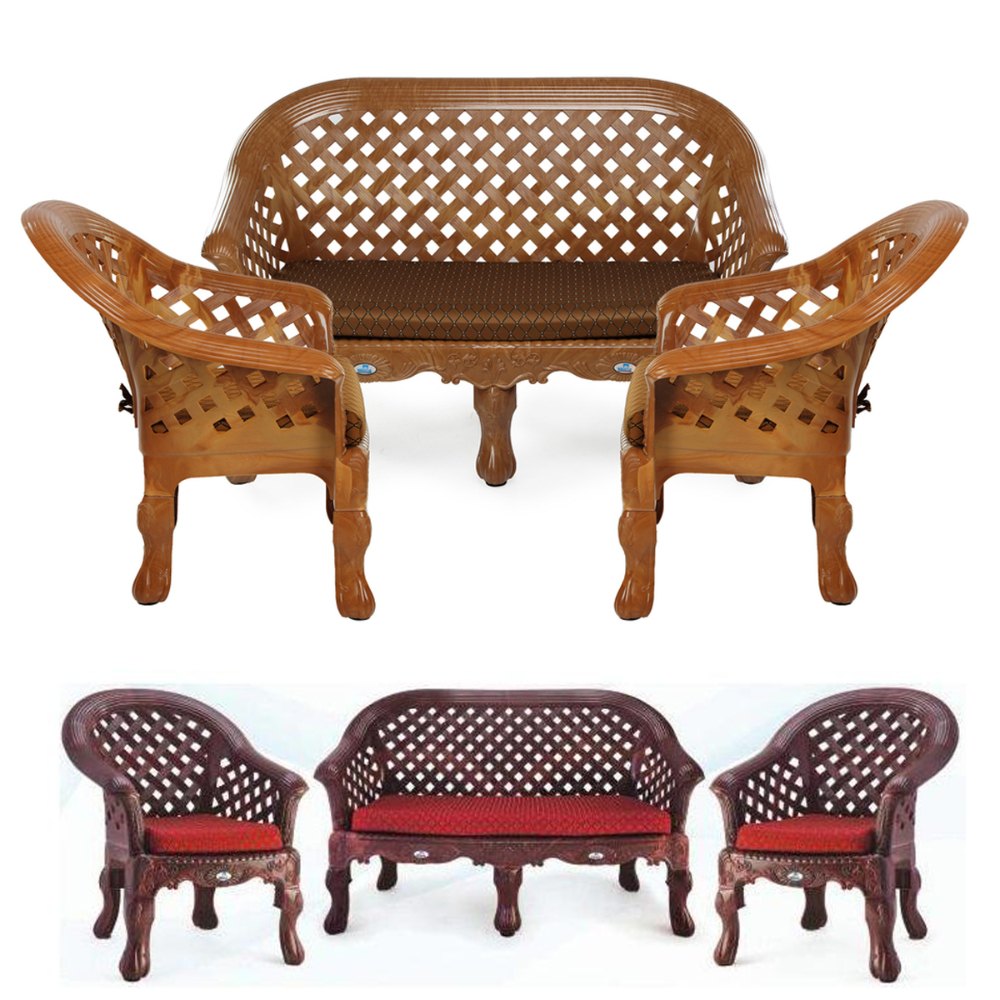 Plastic Sofa Set, 4 Seater, Luxura Fabric
