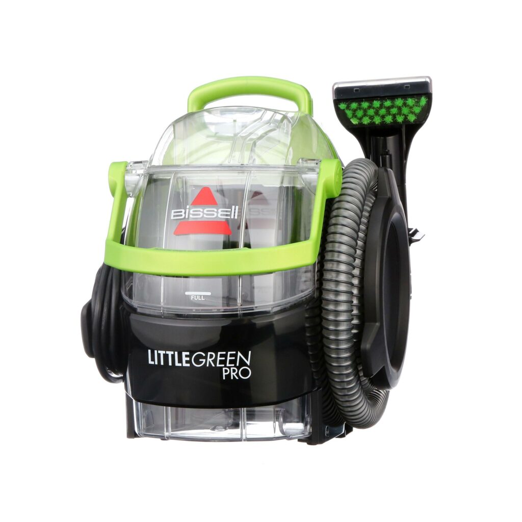 BISSELL® Little Green® Pro Portable Carpet Cleaner is our most powerful spot and stain cleaner. It uses a combination of superior suction, scrubbing action and specially formulated BISSELL cleaning solutions to remove spots, stubborn stains and embedded dirt. This compact, 13-pound machine is easy to take to hard-to-reach areas, so you can remove spots and stains from carpets, area rugs, stairs, upholstery, auto interiors, and similar soft surfaces. It comes with a Deep Stain Tool, 4″ Tough Stain Tool and a trial-size bottle of PRO MAX Clean + Protect formula to permanently remove tough pet stains. This machine helps save pets, too! BISSELL proudly supports BISSELL Pet Foundation® and its mission to help save homeless pets. When you buy a BISSELL product, you help save pets, too. We’re proud to design products that help make pet messes, odors and pet homelessness disappear.