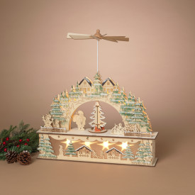CHRISTMAS LIGHTED LASER CUT WOOD VILLAGE SCENE W/ SPINNING WINDMILL MODEL: 2792470 SIZE: 17.7″L