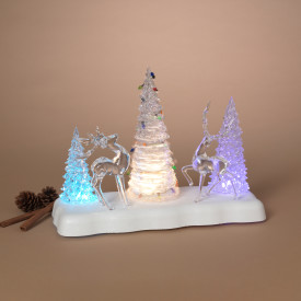 CHRISTMAS LIGHTED MUSICAL ACRYLIC TREE & DEER SCENE WITH ROTATING TREE & TIMER