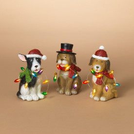 CHRISTMAS LIGHTED RESIN HOLIDAY DOG, 3 ASST