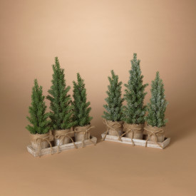 CHRISTMAS HOLIDAY POTTED TREE SET WITH TRAY, 2 ASST (WITH AND WITHOUT FLOCKING) MODEL: 2731350 SIZE: 15.5″H