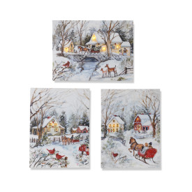 B/O FIBER OPTIC LIGHTED HOLIDAY VILLAGE DESIGN CANVAS PAINTING, 3 ASST