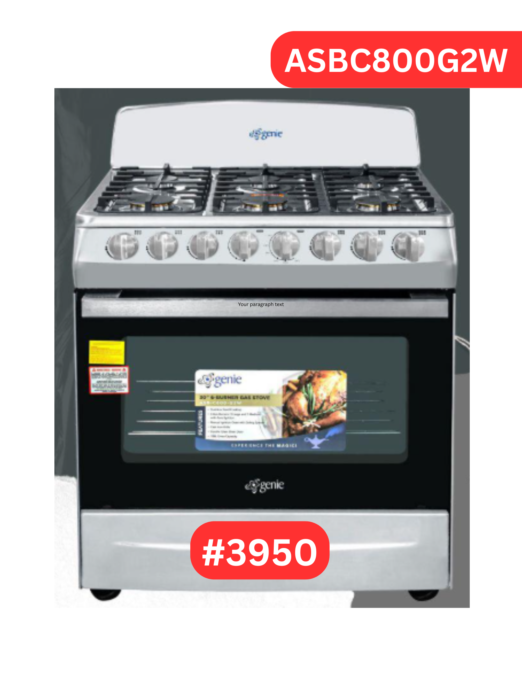 GENIE 30″ 6 BURNER GAS STOVE