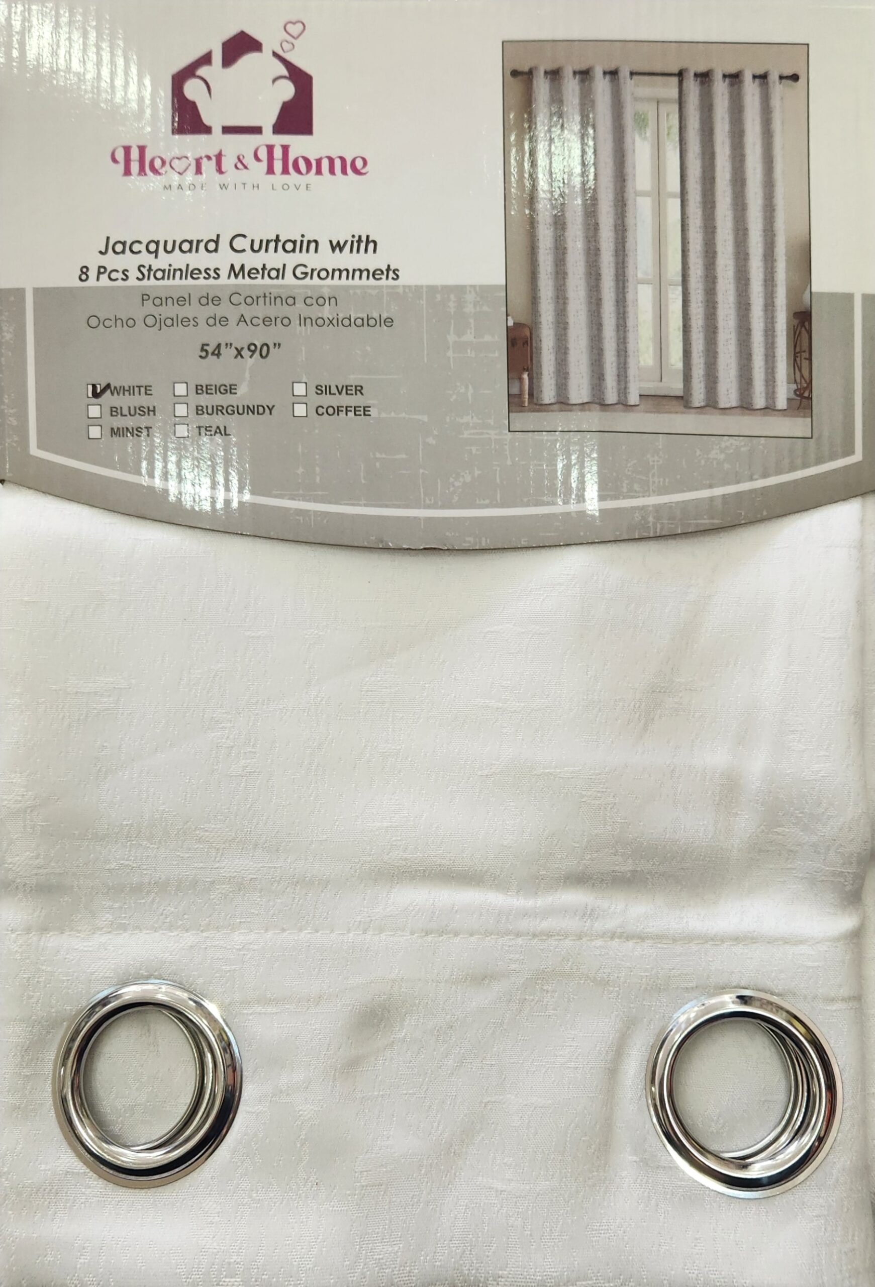 Heart & Home Curtain (54″ x 90″) – White Style 001