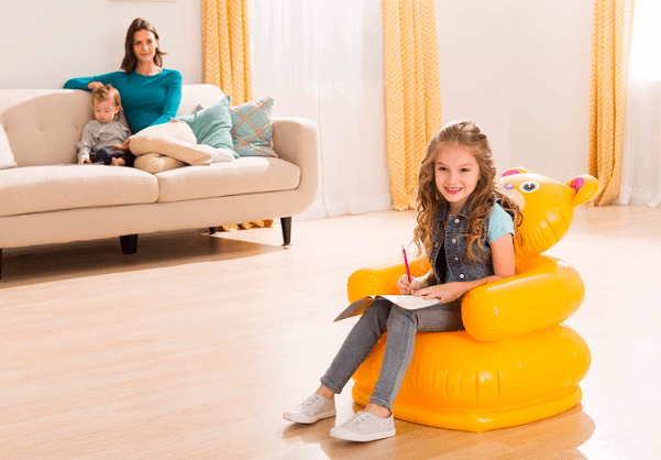 The Intex Happy Animal chair assortment is a precision-tailored bear. This design is sure to be adored by children of all age groups. The bright and vibrant colors pair well with the existing furnishings in the children’s room. It features a comfort inducing design that lets your little one enjoy prolonged sitting without experiencing any form of fatigue.